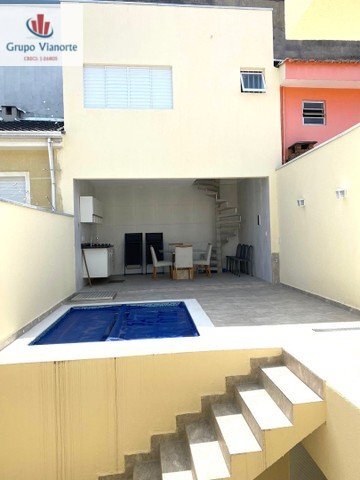 REF-P0382Sobrado a venda no jardim São Paulo a 1 km do metro contendo 2 vagas, Sala de jantar, sala de estar, cozinha planejada com ilha móvel, 3 suítes, sendo 2 com varandas fechadas com vidro, lavabo, lavanderia, piscina aquecida com hidromassagem e área gourmet